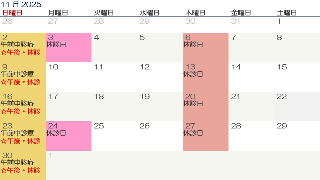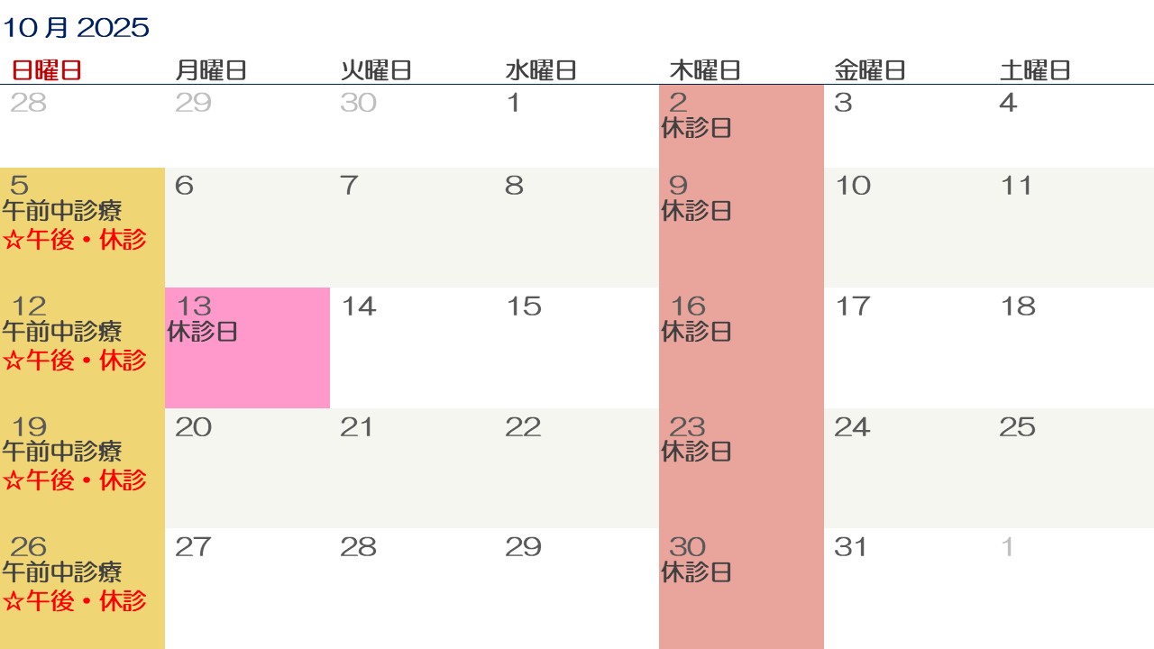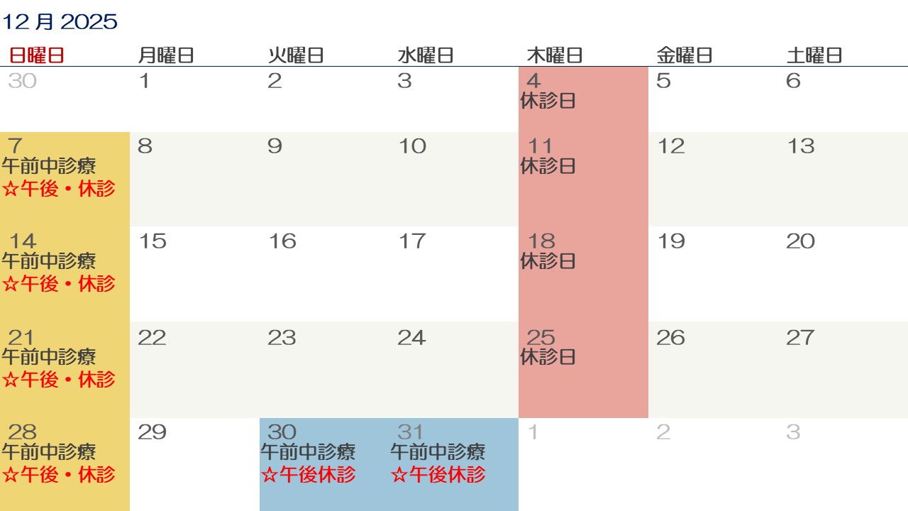 日曜日の診療は、来院前に、必ずお電話にて、ご予約ください。